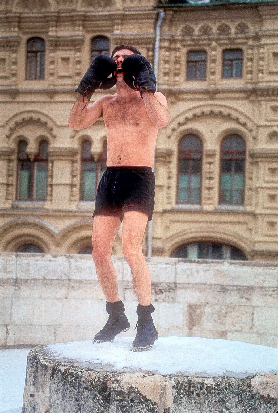 En 1995, l'artiste Alexander Brener a décidé de défier le premier président de Russie, Boris Eltsine. Un jour de février glacial, Brener s'est rendu sur la place Rouge avec ses gants de boxe et en short et commença à scander : « Eltsine, viens ! »