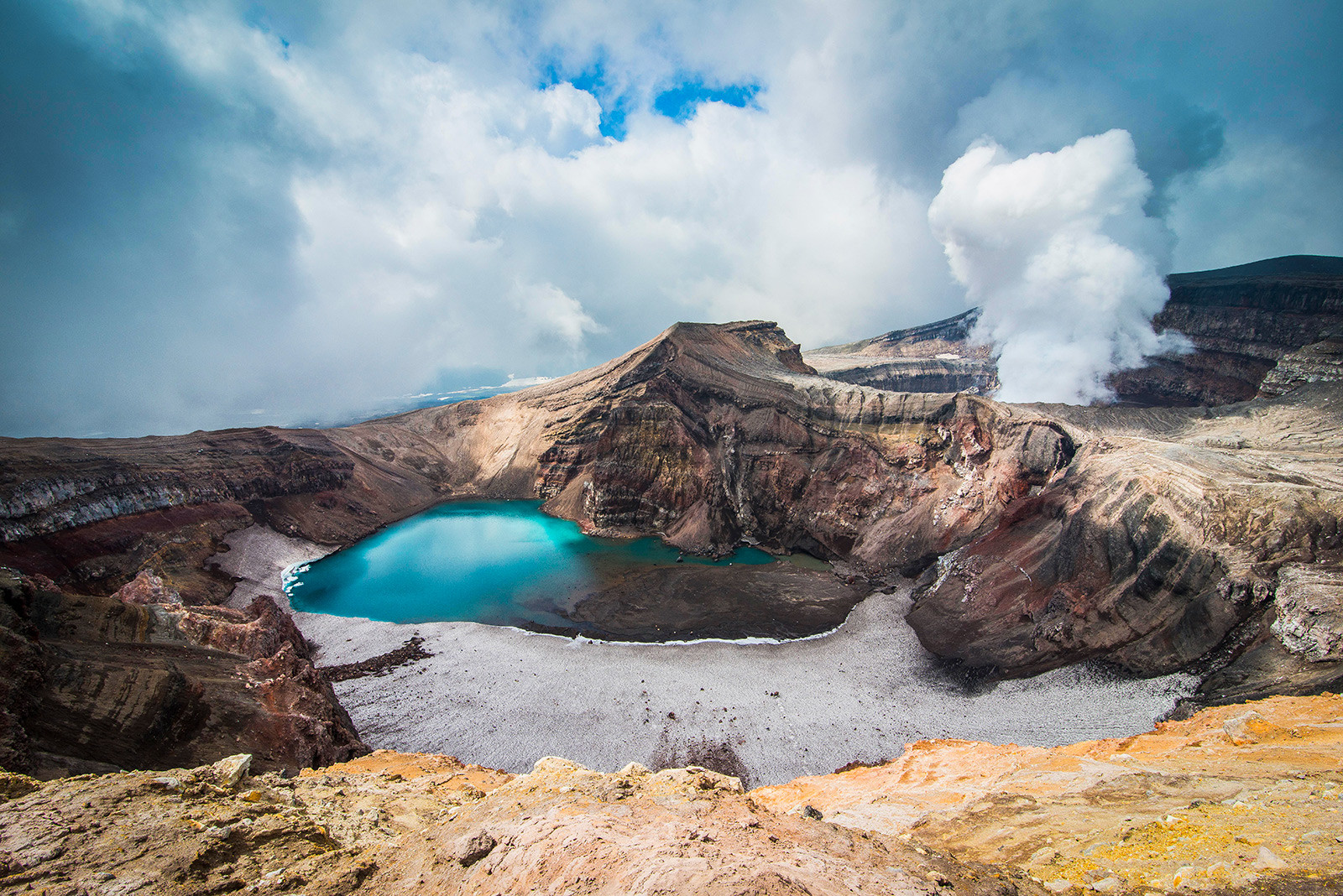 Lac acide situé dans le cratère d’un volcan actif de 1 560 mètres de hauteur, il ne peut être observé que depuis le ciel !