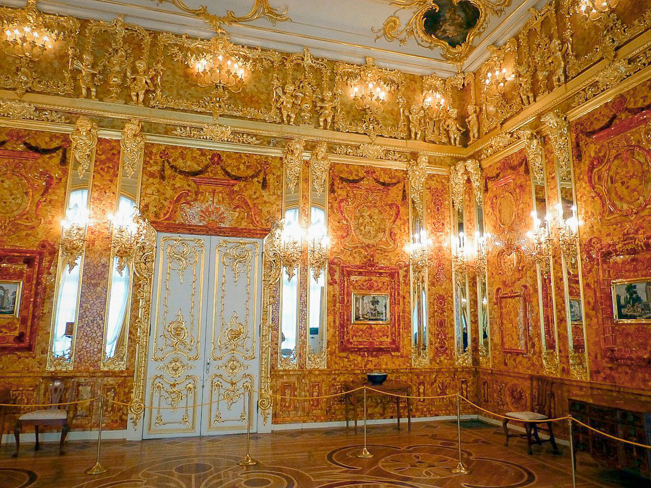 La légendaire chambre d’ambre est l’un des trésors des Romanov à avoir disparu durant la Seconde Guerre mondiale. Seuls quelques fragments ont été récupérés. Toutefois, une réplique de cette œuvre d’art a été conçue pour être accueillie par le palais Catherine, près de Saint-Pétersbourg.