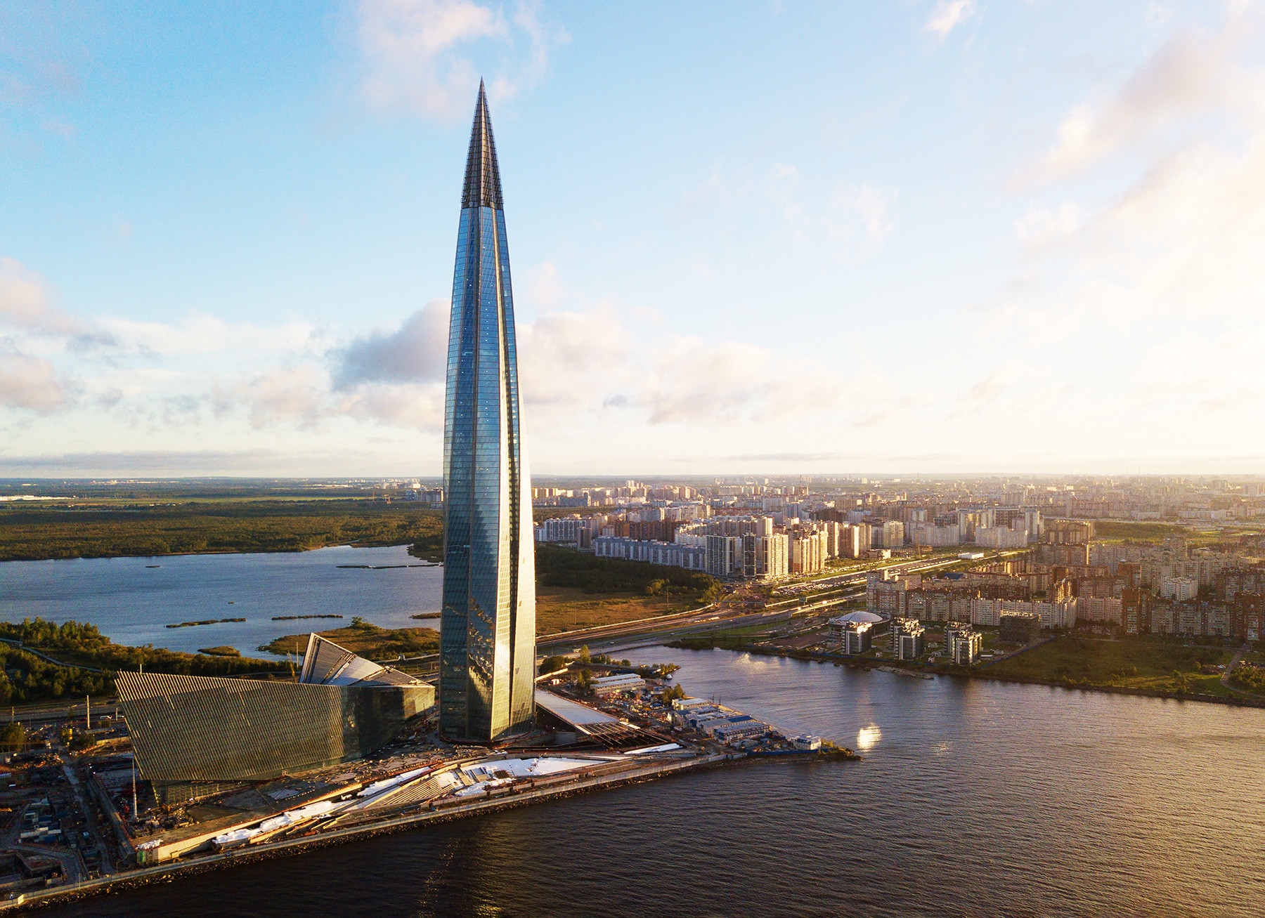Dominant l’horizon de la capitale du Nord du haut de ses 462 mètres, ce gratte-ciel est le plus élevé en Europe et abrite le siège du géant gazier russe Gazprom. Son coût de construction est estimé à 2,5 milliards de dollars, soit encore plus que le Burj Khalifa de Dubaï.