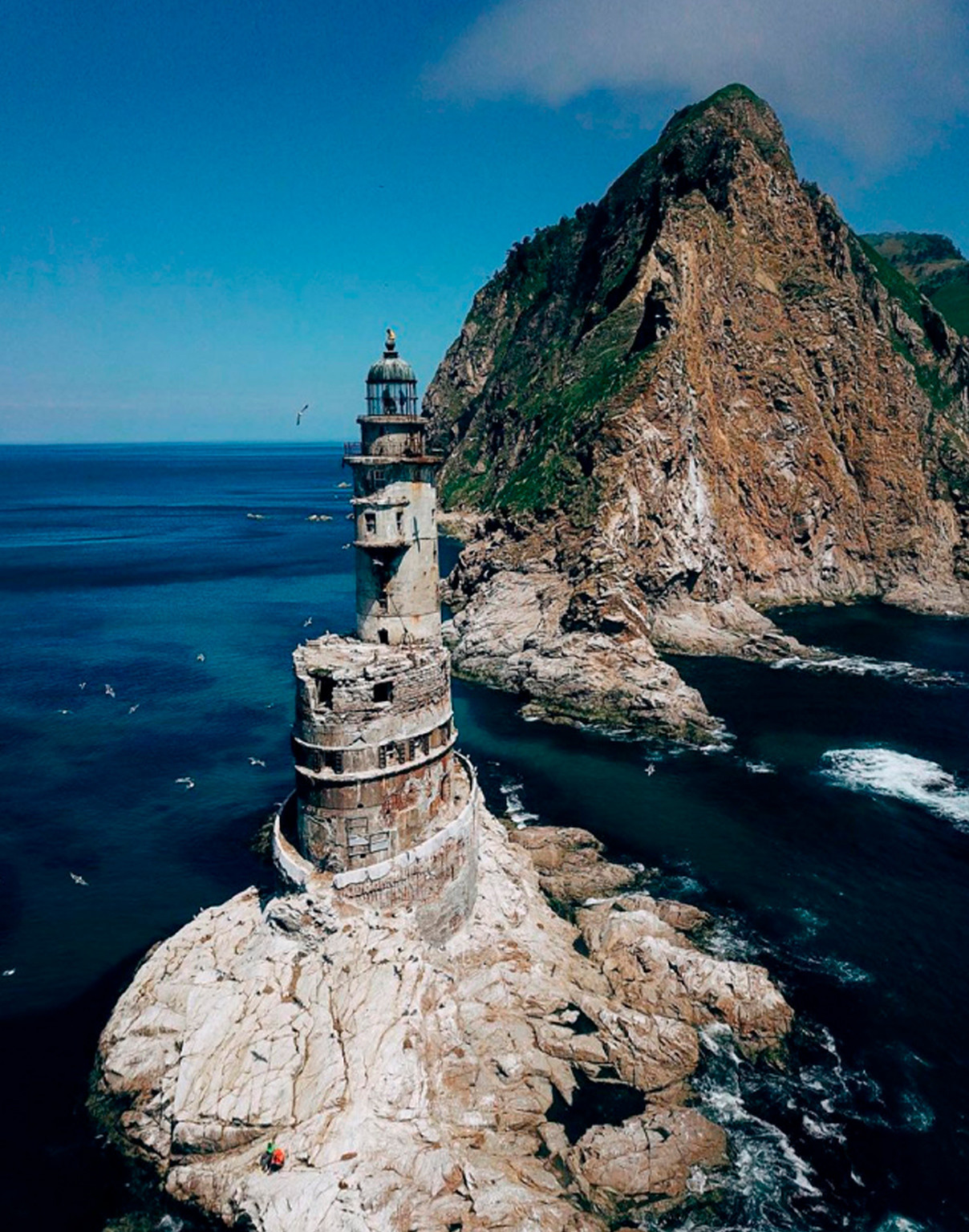 La langue de terre où se dresse ce phare est considérée comme le lieu où commence l’océan Pacifique. Par ailleurs, ce pittoresque phare dit de Tokarev est vieux d’un siècle et demi.