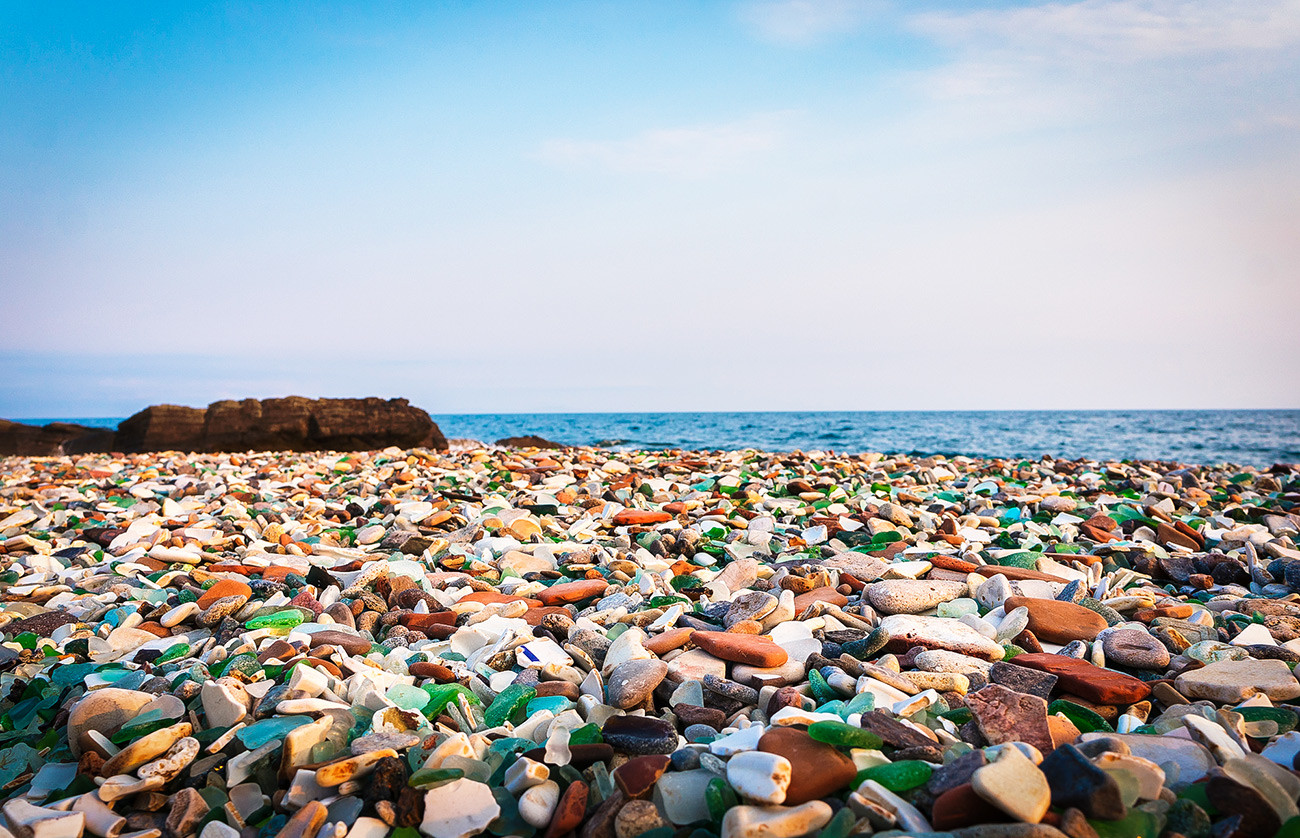 Par le passé, une décharge se trouvait non loin d’ici et cette côte était extrêmement impopulaire auprès les locaux. Mais au cours des années, les marées hautes ont poli le verre de bouteilles qui y avaient été jetées et ont créé ce surprenant endroit.